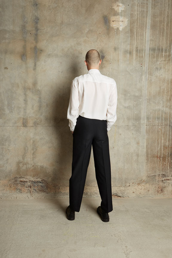 Hemd aus italienischer Seide. Kann mit einem Top kombiniert werden. Leuchtende Farben scheinen gedämpft durch den feinen Stoff. Mit Kragen, Knopfleiste, Perlmuttknöpfen, Brusttasche und einer doppellagigen Passe mit zwei seitlichen Falten im Rücken. Überschnittene Schultern, lange Ärmel mit geknöpften Manschetten und ein abgerundeter Saum mit etwas längerem Rückenteil. Der Stoff ist sandwash-veredelt, das verleiht der Seide einen matten Glanz.